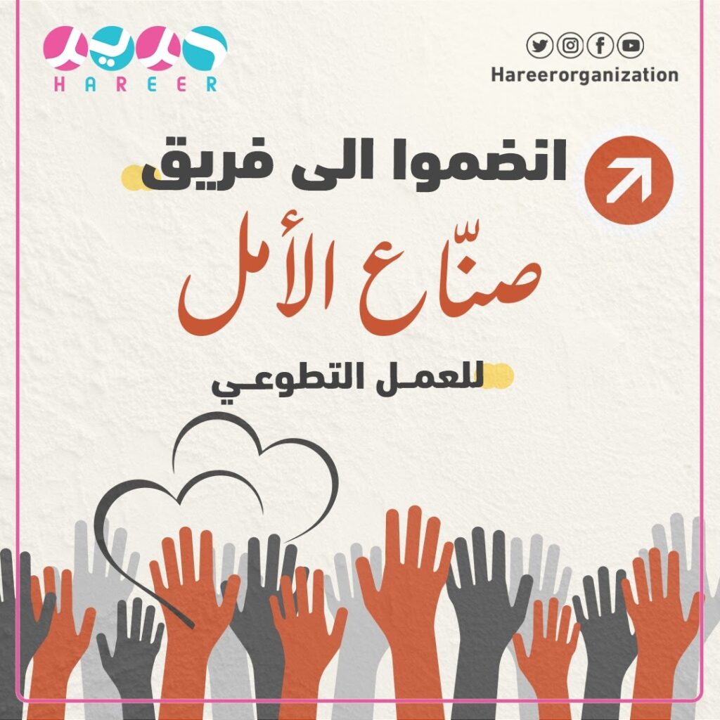 At Hareer Foundation, we are pleased to invite you to join our volunteer team and be part of the humanitarian work and national initiatives we implement to serve sick children and the most vulnerable groups in our community.